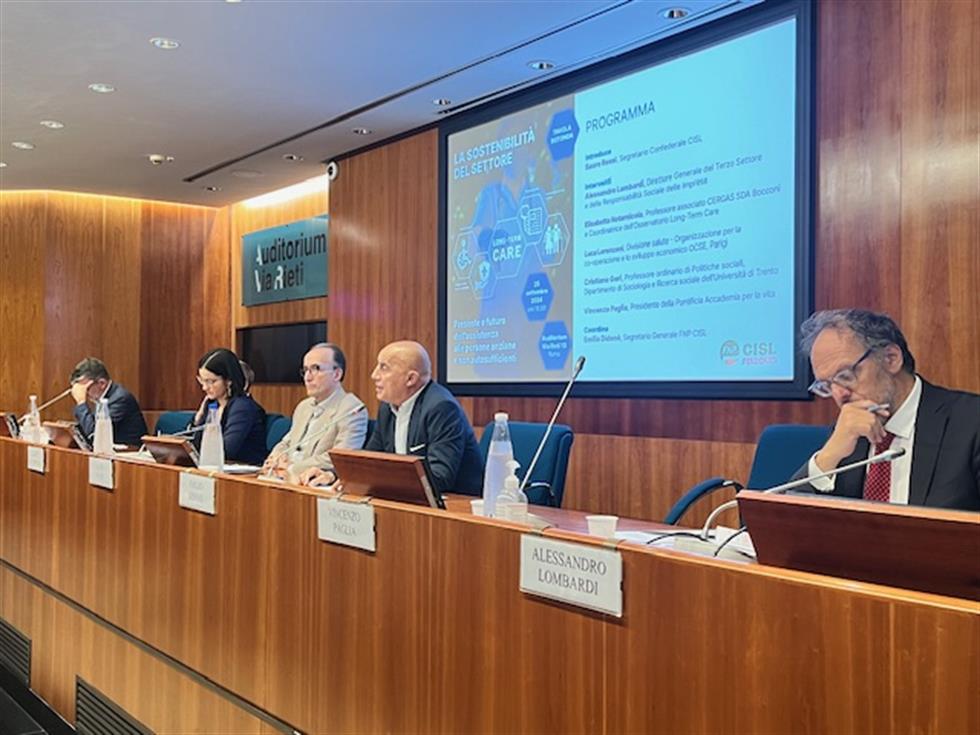 “Un’iniziativa che vuole fare il punto sul mondo della non autosufficienza, partendo dalla riforma della legge che la riguarda da realizzare con l’apporto del sindacato”: questo il messaggio lanciato da Emilio Didonè, segretario generale della FNP CISL, la federazione dei pensionati Cisl che questa mattina all’Auditorium Via Rieti di Roma ha organizzato la tavola rotonda dal titolo “Sostenibilità del Settore Long Term Care”, ovvero la condizione attuale e futura dell’assistenza alle persone anziane e non autosufficienti.
