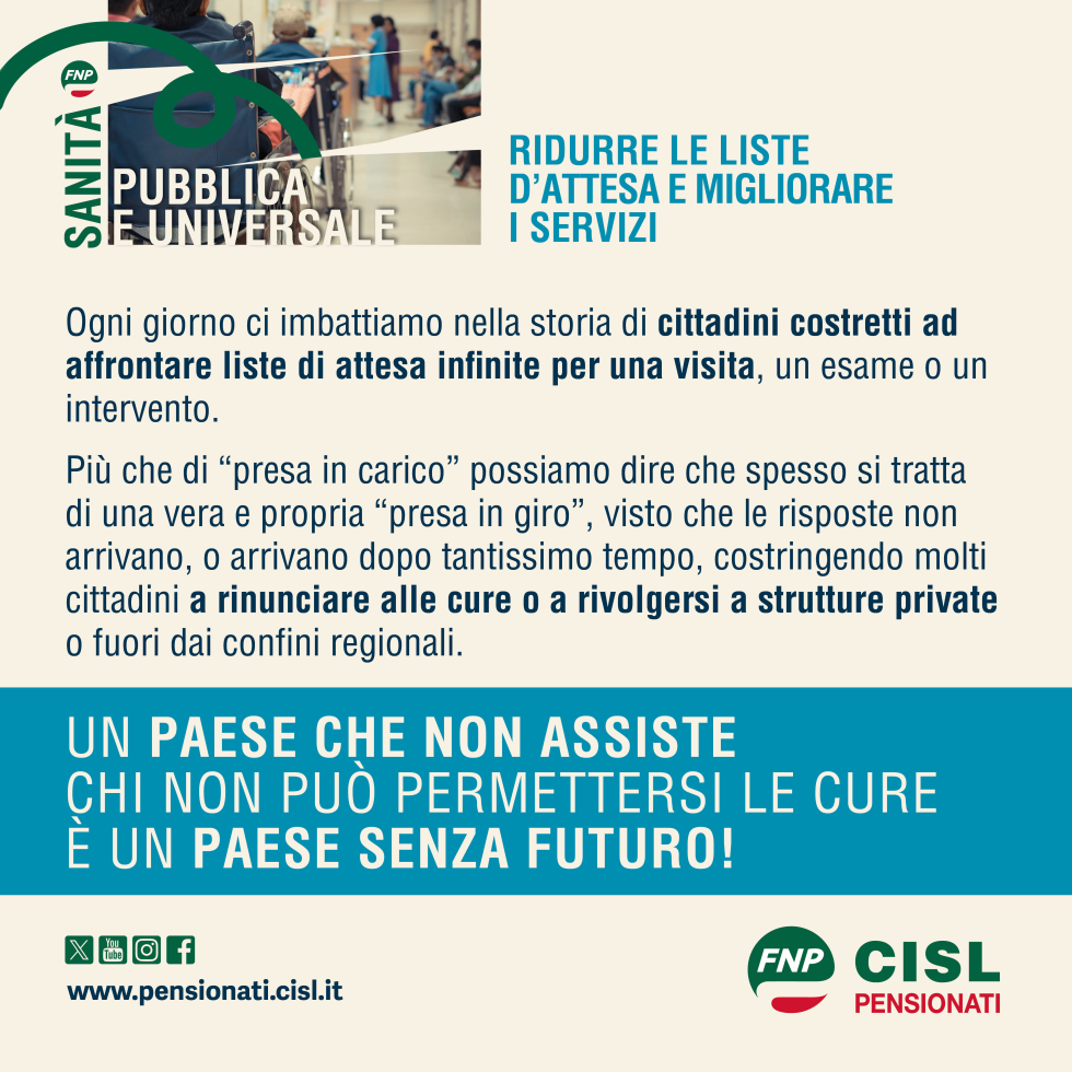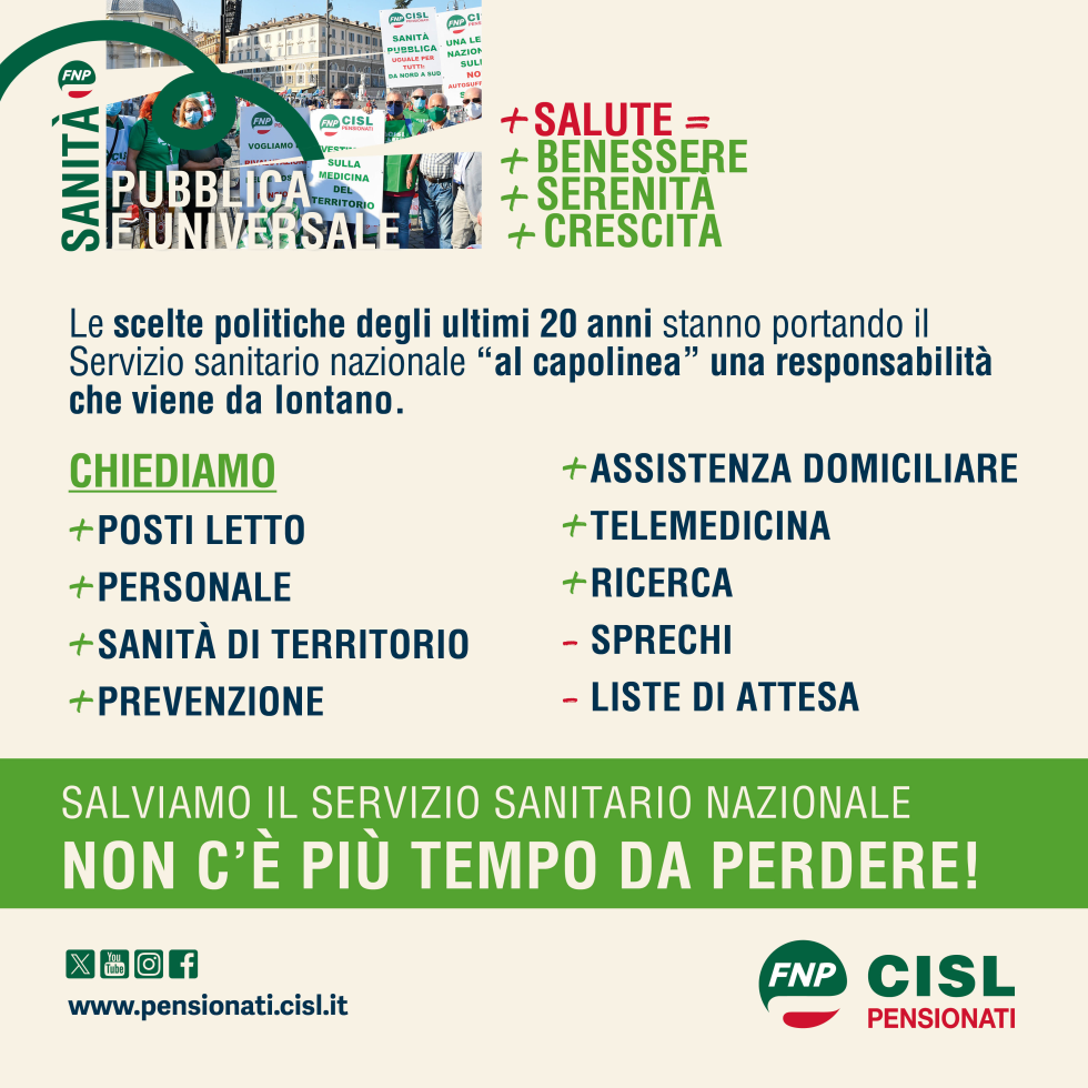 “Il nostro Servizio sanitario nazionale è da anni oramai in uno stato di abbandono e sofferenza: è arrivato il momento di ‘fare qualcosa’. Le scelte politiche ‘sbagliate’ degli ultimi decenni hanno minato alla radice il rispetto dei suoi principi fondanti, quali l’universalità, l’uguaglianza e l’equità. Siamo di fronte al rischio concreto di perdere un sistema sanitario che, sino a poco tempo fa, era uno dei migliori al mondo, garanzia di un diritto costituzionale inalienabile: il diritto alla salute!”: è quanto dichiara Emilio Didonè, segretario generale FNP CISL che lancia un appello a Governo, Regioni, Comuni e istituzioni affinché si proceda prima possibile ad un riordino della sanità italiana. “Sono quotidiane le lacune e le carenze che la nostra organizzazione denuncia, come le liste di attesa, l’affollamento dei pronto soccorso, le carenze organizzative e la mancanza di personale che, in alcune zone più disagiate e interne del nostro Paese, non consentono di trovare a volte neanche un medico o un pediatra di famiglia vicino casa. Un Ssn pubblico che, nel passare degli anni, vede aumentare ‘insopportabili’ diseguaglianze regionali e locali, alimentando la migrazione sanitaria e incrementando la spesa privata delle famiglie sino all’impoverimento e alla rinuncia alle cure.”