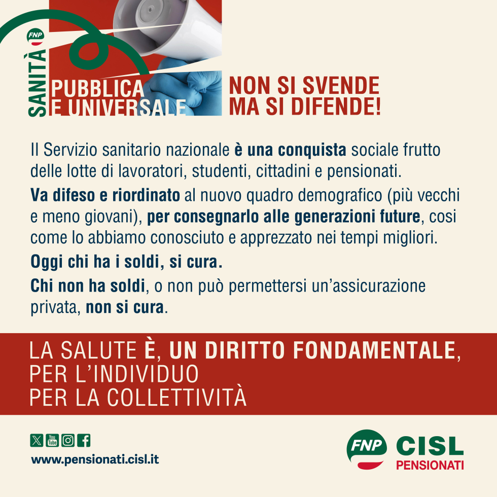 “La difesa di un Ssn universale accessibile a tutti – prosegue Didonè - è da sempre al centro delle nostre rivendicazioni sindacali e oggi siamo chiamati più che mai a far sentire anche la nostra voce: ne va del diritto a curarsi nostro e delle generazioni future. A quasi 45 anni dalla legge istitutiva del Ssn non basta più ‘denunciare’ ma occorre un Patto sociale e politico che, prescindendo da schieramenti politici e governi di turno, rilanci quel modello di Ssn pubblico che abbiamo conosciuto nei tempi migliori. Un “manifesto” per chiedere un impegno e più attenzione al tema sanità, e mettere nero su bianco criticità e proposte per un percorso di riordino del SSN.”
