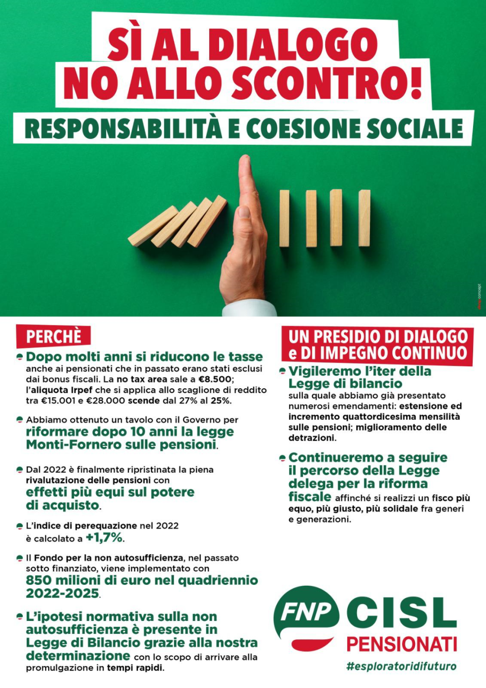 Sì al dialogo, no allo scontro! Responsabilità e coesione sociale