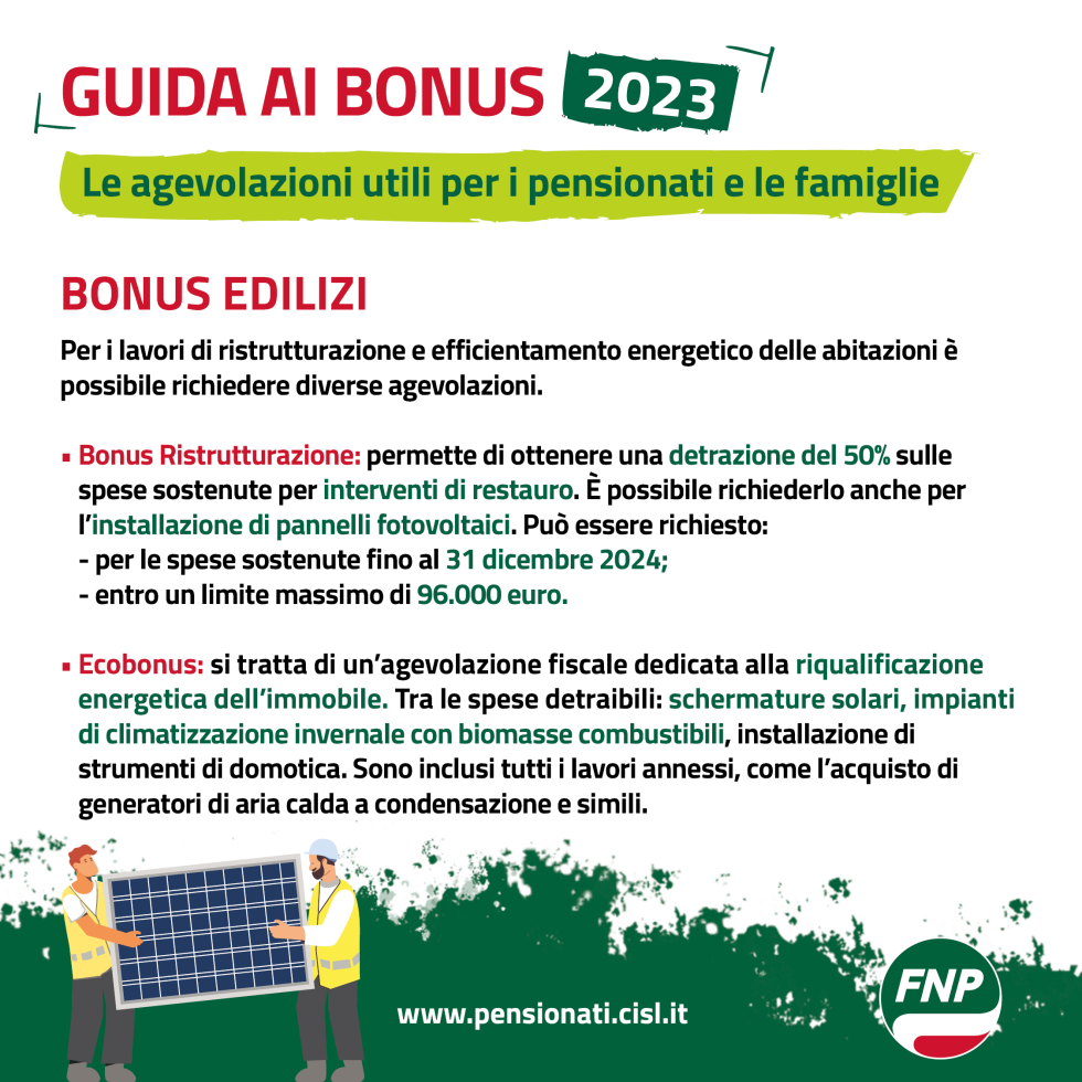 Si va dai Bonus Sociali Elettrico, Gas e Idrico, dedicati alle famiglie in difficoltà, alla Carta Risparmio Spesa, dai bonus dedicati alla ristrutturazione delle abitazioni a quello per l’eliminazione delle barriere architettoniche. Contributi che, soprattutto in questo momento di difficoltà socio-economica del Paese, possono essere di aiuto per le famiglie per sostenere spese importanti di rinnovamento degli edifici e degli impianti. Ma, oltre a quelli di natura edilizia, ci sono anche alcuni bonus per l’acquisto di beni, come il Bonus Mobili, o quelli dedicati alla salute, come il Bonus Psicologo.