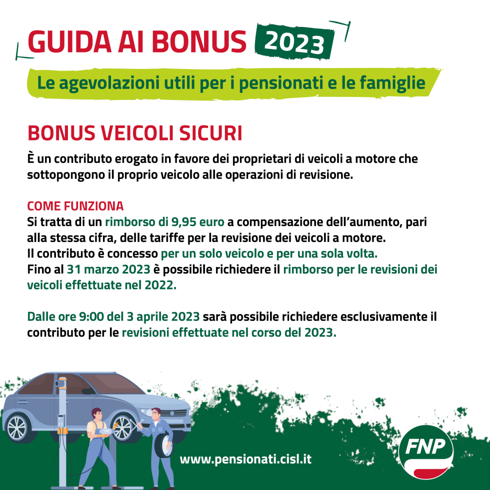 Si tratta di un rimborso di 9,95 euro a compensazione dell’aumento, pari alla stessa cifra, delle tariffe per la revisione dei veicoli a motore e rimorchi. Il contributo è concesso ai proprietari per un solo veicolo e per una sola volta.