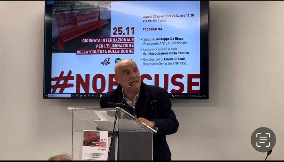 "I femminicidi in Italia aumentano e le giovani generazioni si dimostrano sempre più violente.Questa piaga che si abbatte sulle donne è un grande problema che riguarda noi uomini, noi maschi. Siamo noi che dobbiamo modificare il nostro modo di pensare e di agire. Non solo femminicidi, ma anche violenze sessuali e psicologiche, maltrattamenti e molestie sono la dimostrazione di un dramma che devasta la vita di migliaia di donne. E’ ora di dire basta, di fare rumore, di denunciare ancora prima dell’ennesima tragedia": lo ha detto Emilio Didonè, segretario generale Fnp Cisl nel corso dell’evento di oggi 25 novembre organizzato in collaborazione con Anteas in occasione della Giornata internazionale contro la violenza sulle donne.