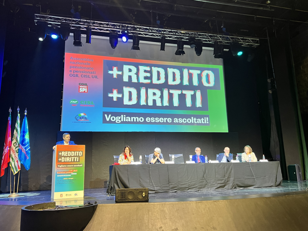 Una grande Assemblea nazionale sotto lo slogan “Più reddito, più diritti” per chiedere al governo risposte concrete per pensionati e lavoratori in tema di pensioni, sanità, fisco e non autosufficienza. L’hanno tenuta i sindacati dei pensionati Spi Cgil, Fnp Cisl e Uilp Uil, oggi 13 giugno presso l’Auditorium del Massimo a Roma, approvando una piattaforma unitaria.